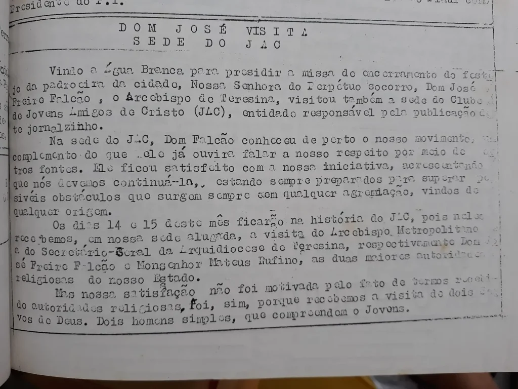 Na sede do JAC, Dom José Freire Falcão, de fala mansa, jeito aristocrático, também conheceu de perto o nosso movimento.
