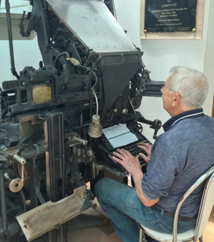 Linotype Modelo 8 em exposição na sede da Academia Passo-Fundense de Letras (RS)/Imagem: Internet